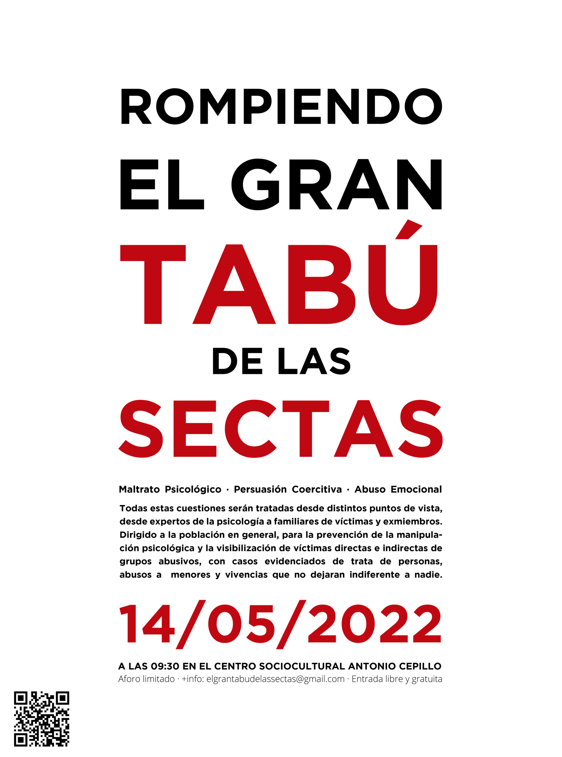Las jornadas están dirigidas a asociaciones, público general y a profesionales a quienes les puedan interesar, como por ejemplo a los profesionales de la Psicología, de hecho, una de las ponencias correrá a cargo de Laura Merino Gómez, Docente en la Universidad de Villanueva y psicóloga especializada en Sectas Destructivas y procesos de Radicalización.