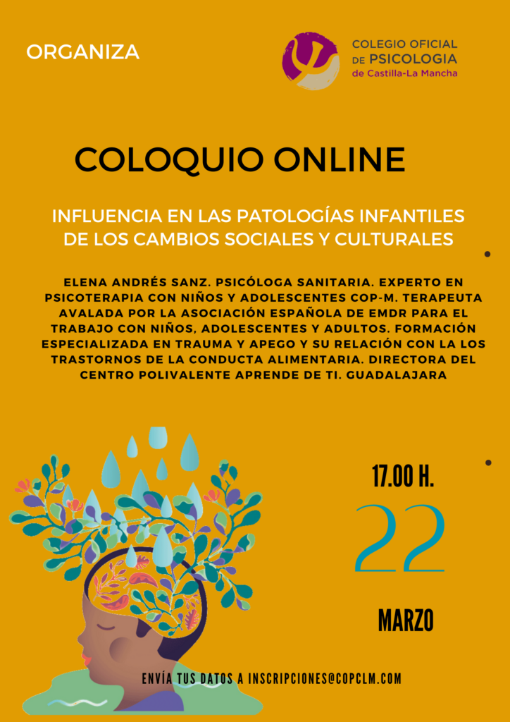 Dentro de las actividades programadas en el Plan de Formación 2022-2023 del Colegio Oficial de la Psicología de Castilla-La Mancha, el miércoles 22 de enero de 2023, a las 17:00 horas, tendrá lugar el Coloquio on line denominado ” Influencia en las patologías infantiles de los cambios sociales y culturales”