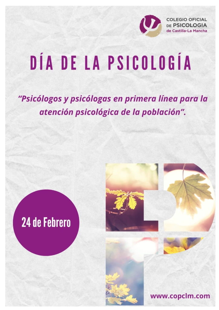 Para conmemorar este 24 de febrero, Día de la Psicología, el Colegio Oficial de Psicología de Castilla-La Mancha ha elaborado el cartel que se puede ver a continuación, con el lema “Psicólogos y psicólogas en primera línea para la atención psicológica de la población”.