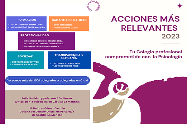 El Colegio Oficial de la Psicología de Castilla-La Mancha ha elaborado un documento que contiene las acciones más relevantes llevadas a cabo durante el año 2023.