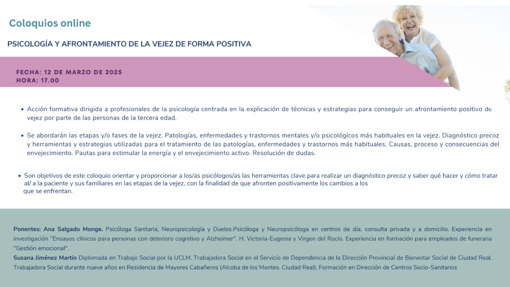 Coloquio on line: Psicología y afrontamiento de la vejez de forma positiva