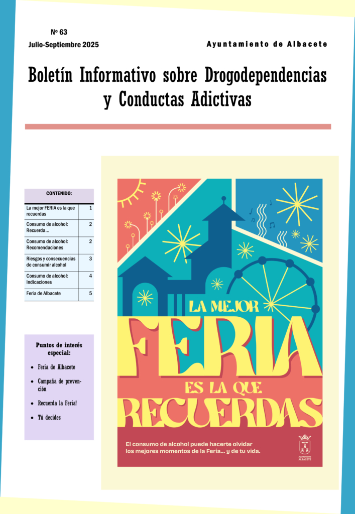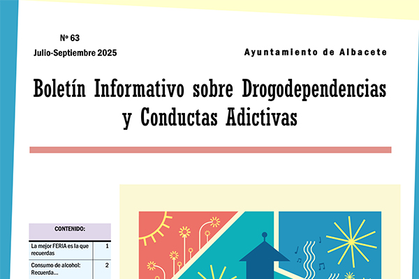 El Ayuntamiento de Albacete nos remite su Boletín Nº 63, correspondiente a los meses de julio, agosto y septiembre de 2025, sobre Drogodependencias y Conductas Adictivas.