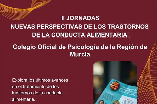 El Colegio Oficial de Psicología de la Región de Murcia (COPRM), organiza las, “II Jornadas Nuevas Perspectivas en el Abordaje de los Trastornos de la Conducta Alimentaria”, que se llevarán a cabo el viernes 30 de mayo de 2025 de 9:00h a 20:00h.
