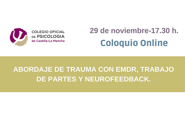 Dentro de las actividades programadas en el Plan de Formación 2023-2024 del Colegio Oficial de la Psicología de Castilla-La Mancha, el miércoles 29 de noviembre de 2023, a las 17:30 horas, tendrá lugar el Coloquio denominado “Abordaje de trauma con EMDR, trabajo de partes y neurofeedback”.