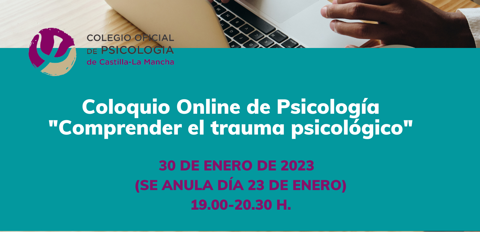 Dentro de las actividades programadas en el Plan de Formación 2022-2023 del Colegio Oficial de la Psicología de Castilla-La Mancha, el lunes 30 de enero de 2023, a las 19:00 horas, tendrá lugar el Coloquio on line denominado “Comprender el Trauma Psicológico”.