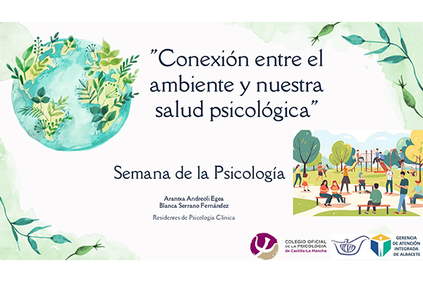 Este año, las distintas actividades del Colegio Oficial de Psicología de Castilla-La Mancha se han centrado en el ámbito de la Psicología Ambiental, bajo el lema “Conexión entre el Medio Ambiente y nuestra salud psicológica”.