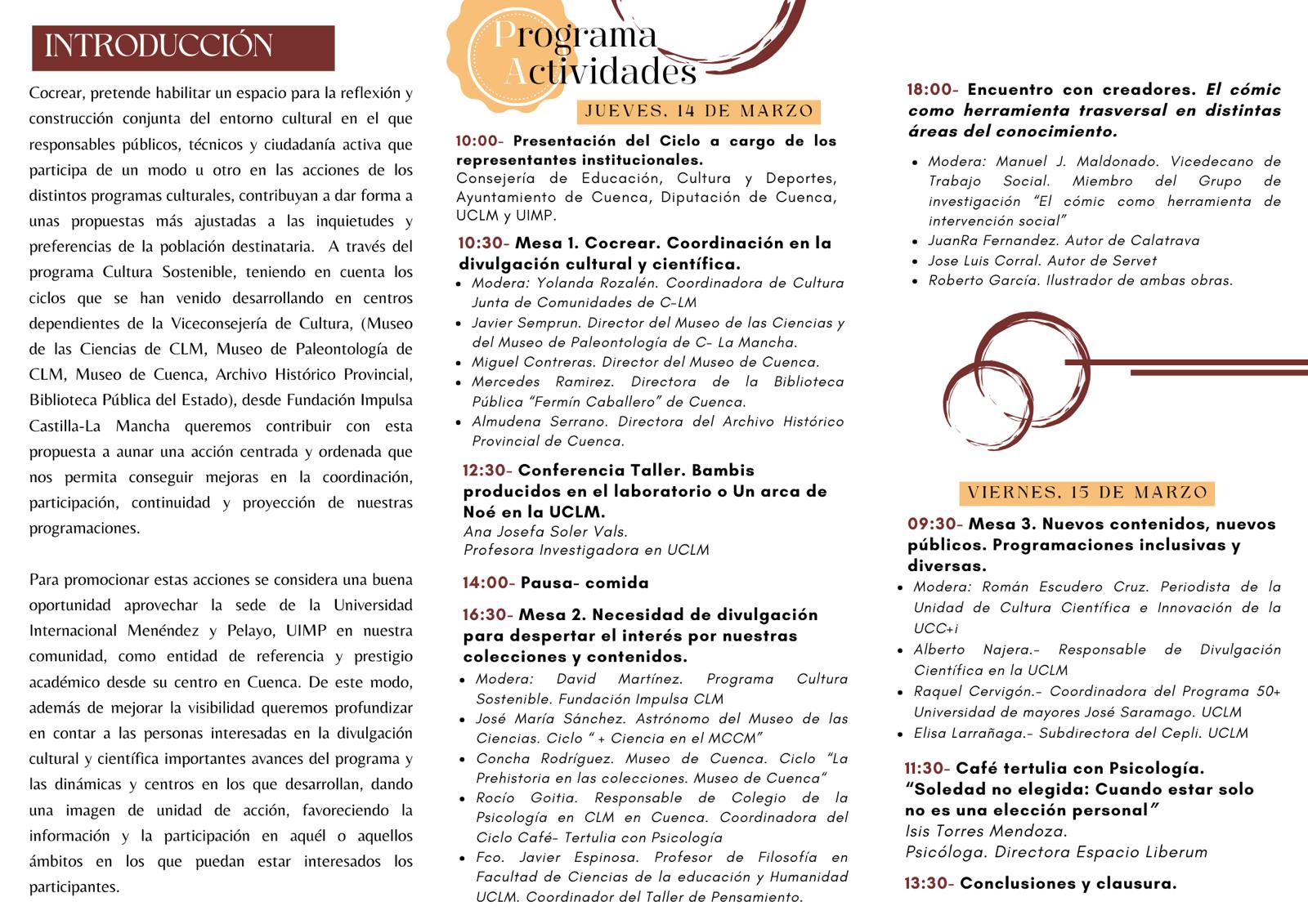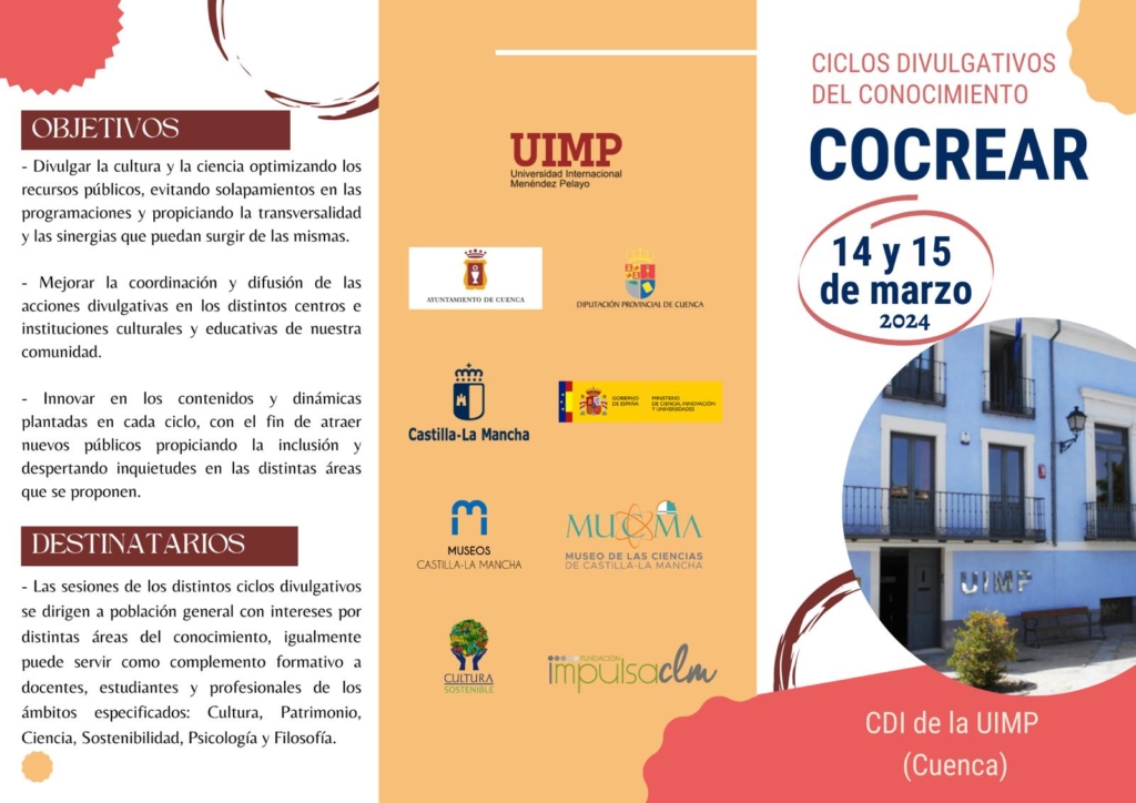 La sede conquense de la Universidad Internacional Menéndez Pelayo, organiza los denominados “Ciclos divulgativos del conocimiento”, los días 14 y 15 de marzo de 2024