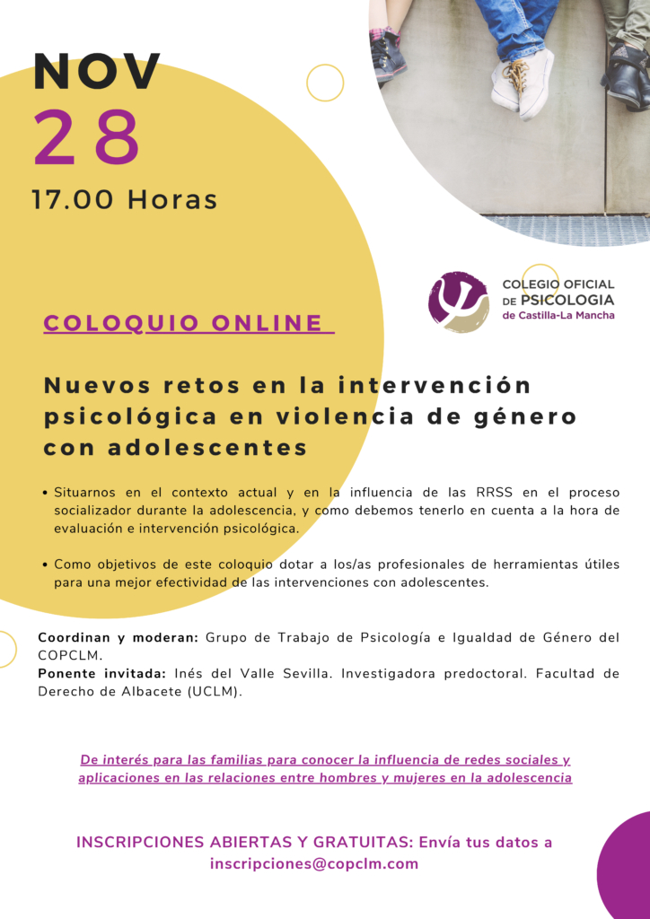 Coloquio on line: “Nuevos retos en la intervención psicológica en violencia de género con adolescentes”