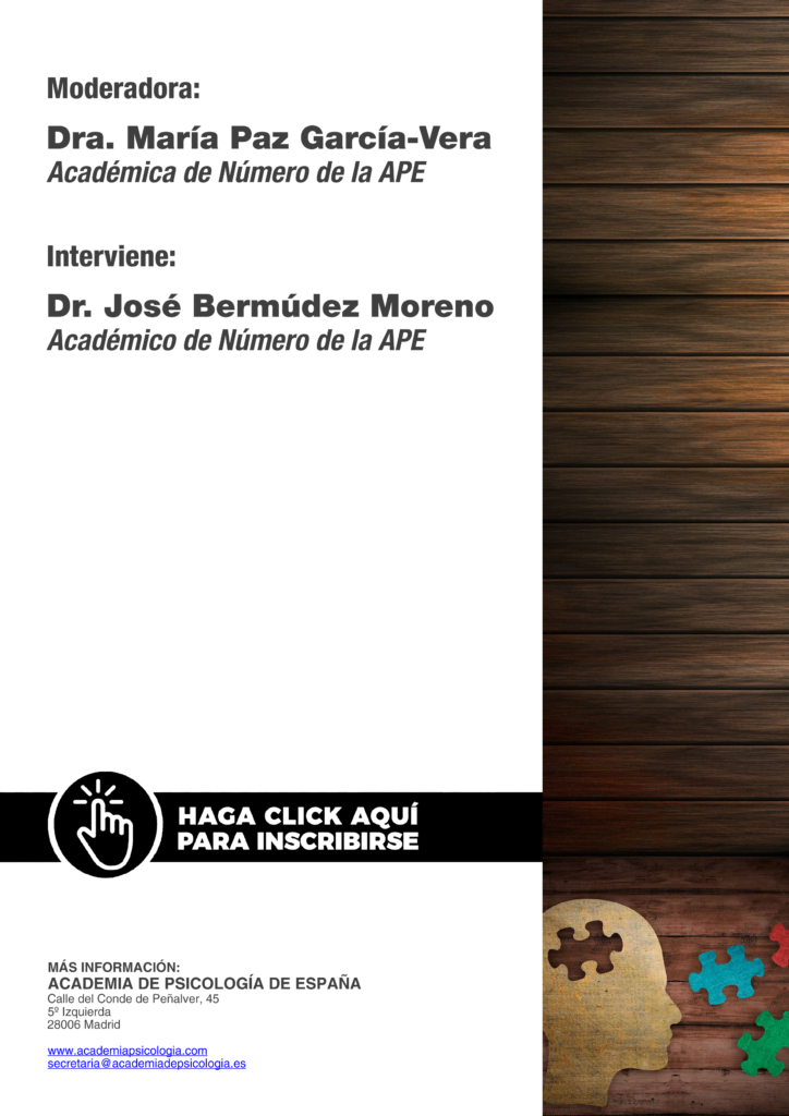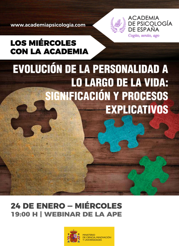 La Academia de Psicología de España, organiza la conferencia: “Evolución de la personalidad a lo largo de la vida: significación y procesos explicativos”, dentro del ciclo de conferencias “Los Miércoles con la Academia”, impartida por el Excmo. Sr. D. José Bermúdez Moreno, que se celebrará el miércoles 24 de enero, a las 19.00 horas (formato digital Zoom).