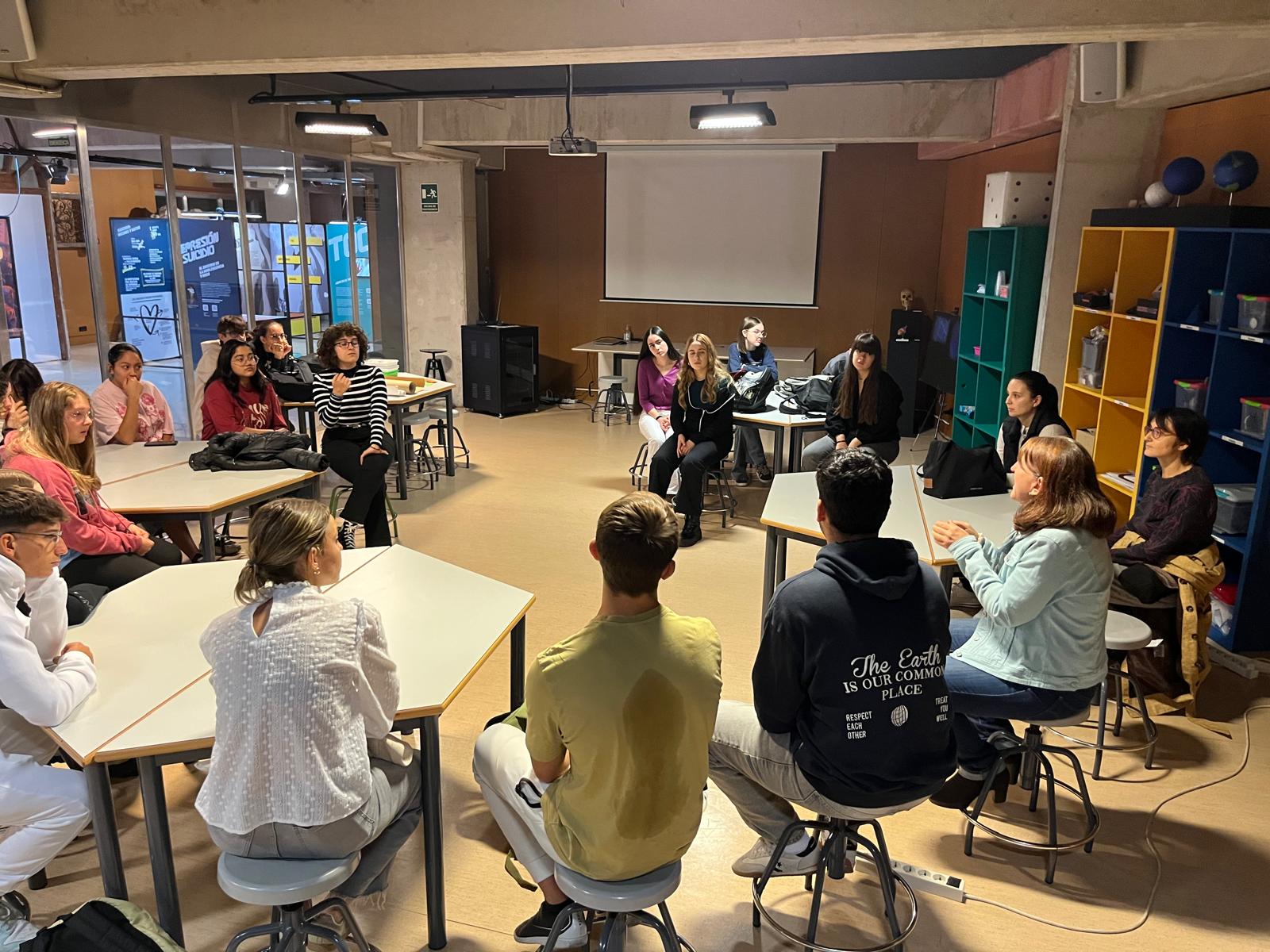 Durante la mañana, la vocal del COPCLM en Cuenca, Rocío Goitia González, participó en la visita de un grupo de estudiantes del Bachillerato, así como de un grupo de alumnos de la Facultad de Trabajo Social, con los que se realizó una visita por la exposición Menssana, que actualmente se presenta en Cuenca, para luego promover un coloquio sobre el tema de la salud emocional y otros temas relacionados que surgieron a partir de lo visto en la exposición: el estigma de la enfermedad mental, neurobiología de las emociones, TCA.s, adicciones, bullying, expresión de emociones, entre otras. Todo ello en coordinación con el Programa Biblioteca Solidaria y el Museo de las Ciencias, quienes han cedido los espacios y han dado gran difusión a las actividades.