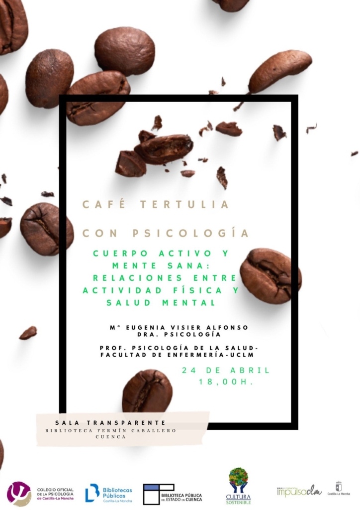La Sala Transparente de la Biblioteca Pública Fermín Caballero de Cuenca acogerá, el miércoles 24 de abril a las 18:00 horas, la celebración del Café – Tertulia con Psicología “Cuerpo activo y mente sana: Relaciones entre actividad física y salud mental”.