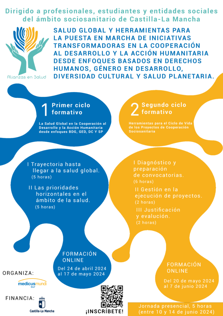 Se enmarca en un proyecto cofinanciado por la Junta de Comunidades de Castilla-La Mancha en convocatoria de 2023: “Alianzas en Salud: Formación a profesionales del ámbito de la cooperación sociosanitaria para la puesta en marcha de iniciativas transformadoras, sostenibles y coordinadas en salud global, acción humanitaria y educación para el desarrollo en el marco de la Agenda 2030”