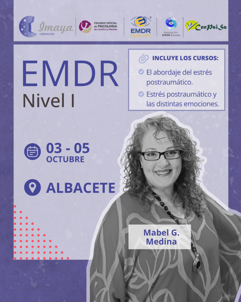 Entre los días 3 y 5 de octubre, tendrá lugar la celebración de un curso sobre Terapia EMDR, organizado por Imaya Formación, en el que colabora el Colegio Oficial de Psicología de Castilla-La Mancha.