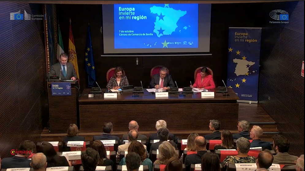 En la inauguración intervinieron diversas autoridades andaluzas y europea como Antonio Sanz Cabello, Consejero de la Presidencia de la Junta de Andalucía; Antonio Muñoz Martínez, Alcalde de Sevilla; María Andrés, Directora de la Oficina del Parlamento Europeo en España; John Rutherford, presidente Comisión de Asuntos Europeos, Cámara de Comercio de España y Francisco Herrero León, Presidente Cámara de Comercio de Sevilla