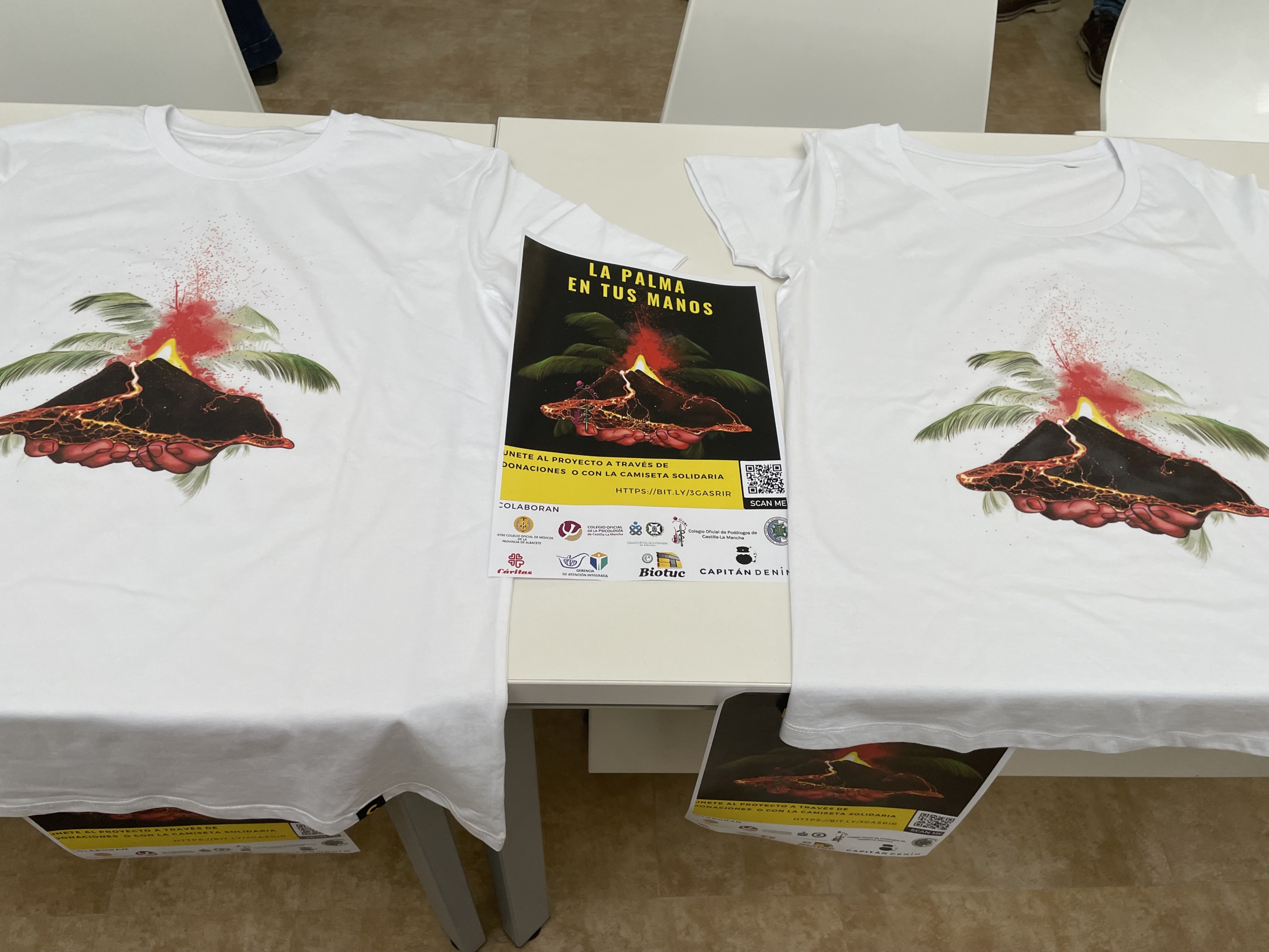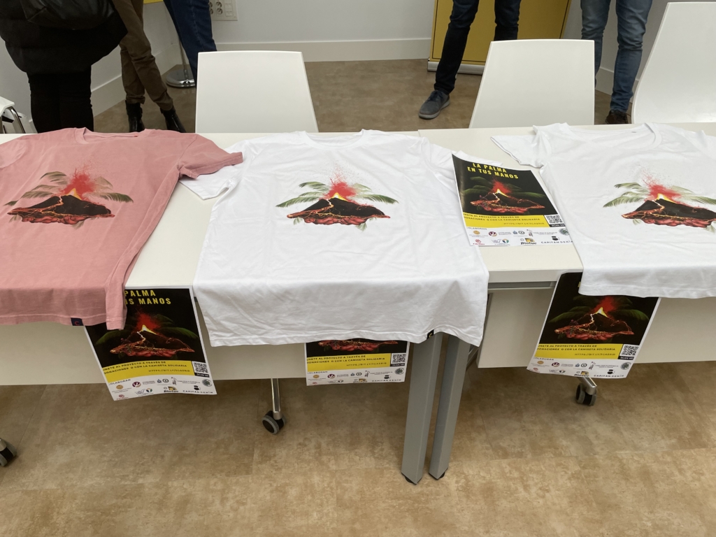 La iniciativa parte de dos médicos de urgencias, Verónica Plaza y Pilar Amores, consistente en la venta camisetas solidarias, diseñadas por la primera de ellas, con el objetivo de ayudar a los damnificados por el volcán. El precio de las camisetas es de 20 euros, y la totalidad de esa cantidad irá destinada a Cáritas de La Palma.