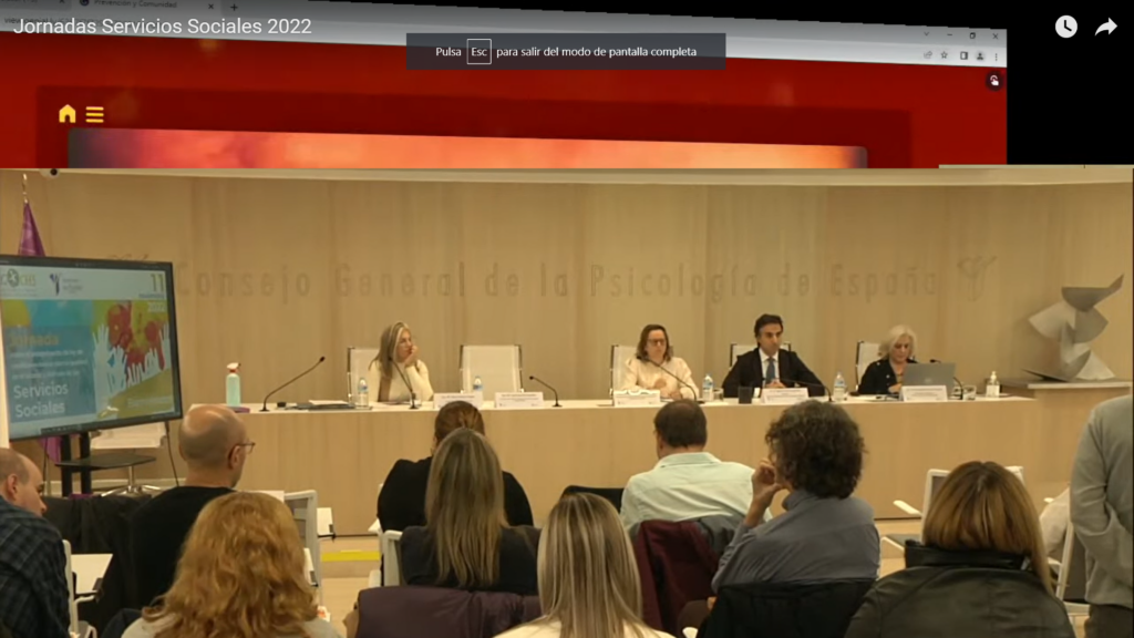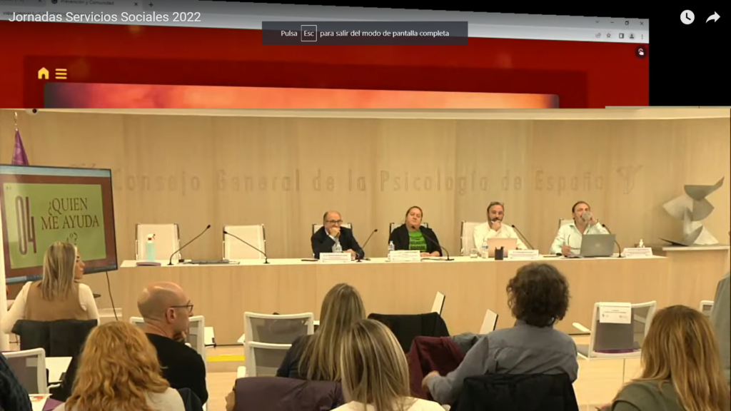 Posteriormente tuvieron lugar dos mesas redondas. La primera mesa llevaba por título “Presente y futuro de los Servicios Sociales: el modelo actual de los Servicios Sociales”, y en ella participaron, por parte de la división de Psicología de intervención social, Santiago Boira y Salvador Almenar, y por parte del Colegio de Educadores sociales, Pedro Gregorio Blázquez y Sonia González, También se contó con la exposición por streaming de Fernando Fantova, Psicólogo y educador social.