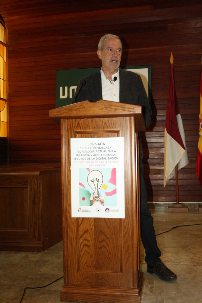 La jornada ha contado con las ponencias “Cómo afecta el uso de las redes sociales al bienestar psicológico y la autoestima de los jóvenes”, a cargo de Darío Nuño Díaz Méndez, Catedrático de Psicología de la Facultad de Medicina de Ciudad Real y vocal del Colegio Oficial de Psicología de Castilla-La Mancha; “Uso responsable de las TICs. Tecnopatías”, pronunciada por Ricardo Reolid Martínez, especialista en Medicina de Familia y Comunitaria, creador del proyecto “Pacientes 3.0” y vocal del Colegio Oficial de Médicos de Albacete; y “Desescalada digital en la escuela y mejora de la enseñanza”, a cargo de Javier Zarzuela Aragón, educador, eco activista y autor del libro “Stop TIC Infancia, por qué desdigitalizar la Escuela”; y ha resultado de gran interés para el público asistente.