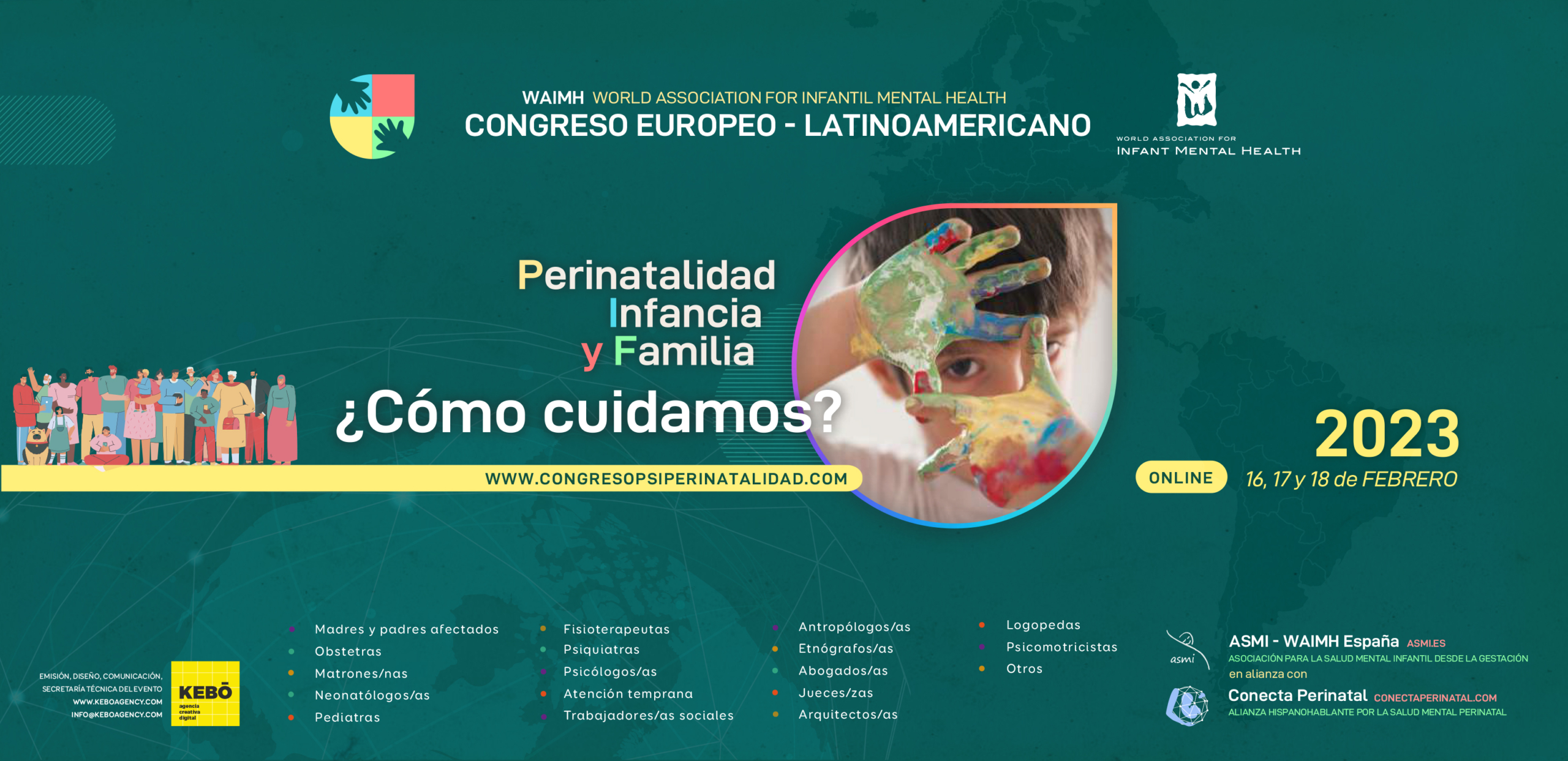 La organización de este congreso corre a cargo de ASMI WAIMH-España, de la WAIMH Mundial, de la Alianza Hispanohablante por la Salud Mental Perinatal y de la Familia “Conecta Perinatal” y con la estrecha colaboración de l´Association Européenne de Psychopathologie de l´Enfant et de l´Adolescent, junto a otras filiales europeas de la WAIMH.