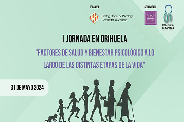 Organizada por el Colegio Oficial de Psicología de la Comunidad Valenciana, el viernes 31 de mayo, tendrá lugar en Orihuela (Alicante), la I Jornada “Factores de salud y bienestar psicológico a lo largo de las distintas etapas de la vida”