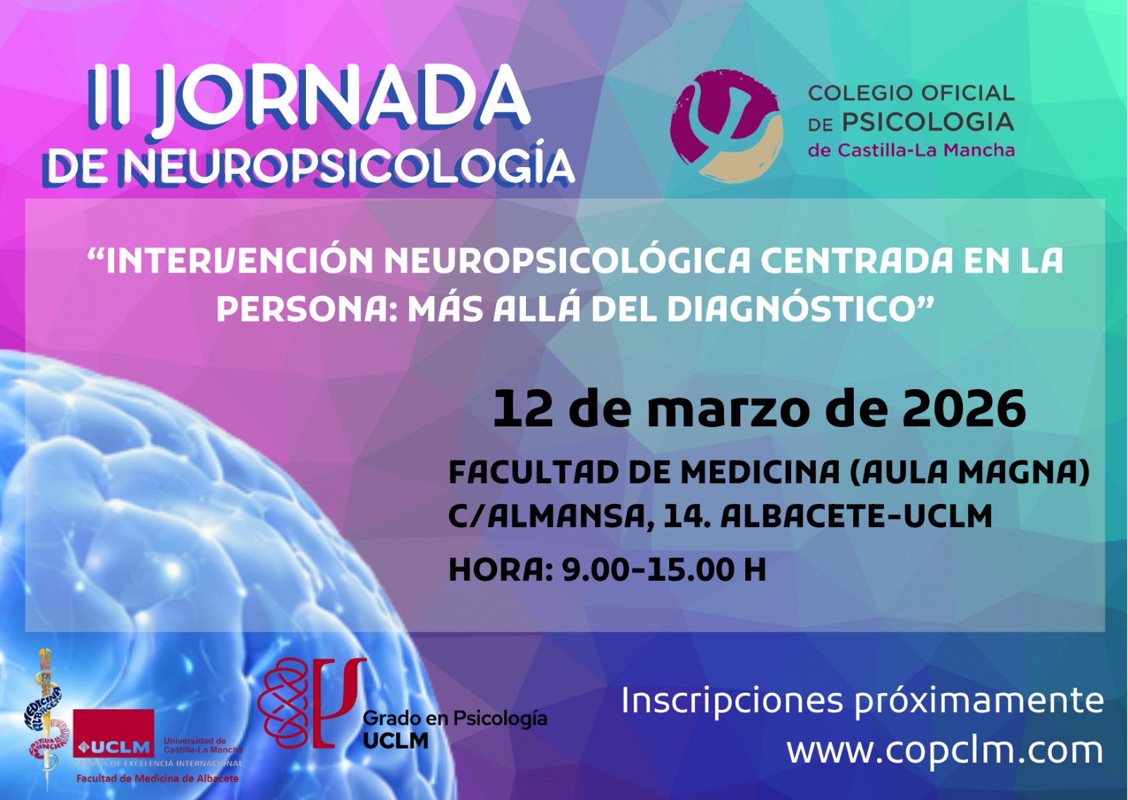 Ante el éxito de la anterior edición, el Colegio Oficial de Psicología de Castilla-La Mancha organiza la II Jornada de Neuropsicología que, en esta ocasión llevará por título “Intervención neuropsicológica centrada en la persona: Mas allá del diagnóstico”