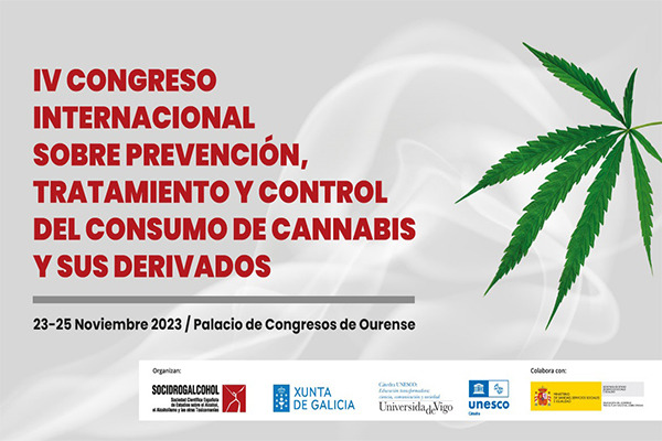 Del 23 al 25 de noviembre de 2023, se celebrará en Ourense, en formato híbrido, el IV Congreso Internacional sobre Prevención, Tratamiento y Control del Consumo de Cannabis, organizado por la Sociedad Científica Española de Estudios sobre el Alcohol y otras Toxicomanías (SOCIDROGALCOHOL), y en la que participa como entidad colaboradora el Consejo General de la Psicología, entre otras.