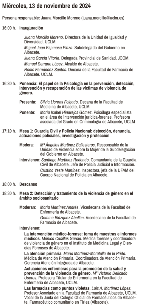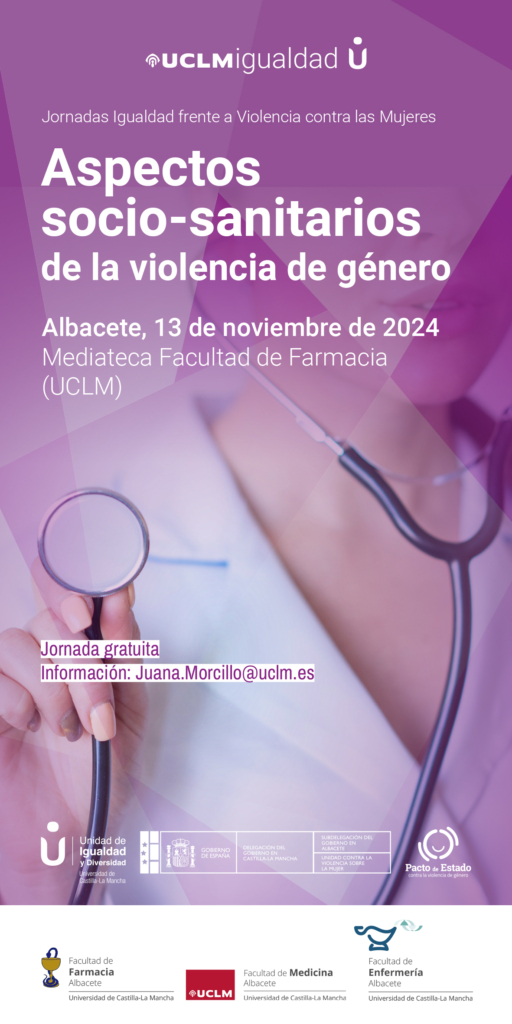 La mediateca de la Facultad de Farmacia de la Universidad de Castilla-La Mancha en Albacete acogerá, el día 13 de noviembre una jornada formativa “Aspectos socio-sanitarios de la Violencia de Género”, con entrada libre hasta completar aforo.