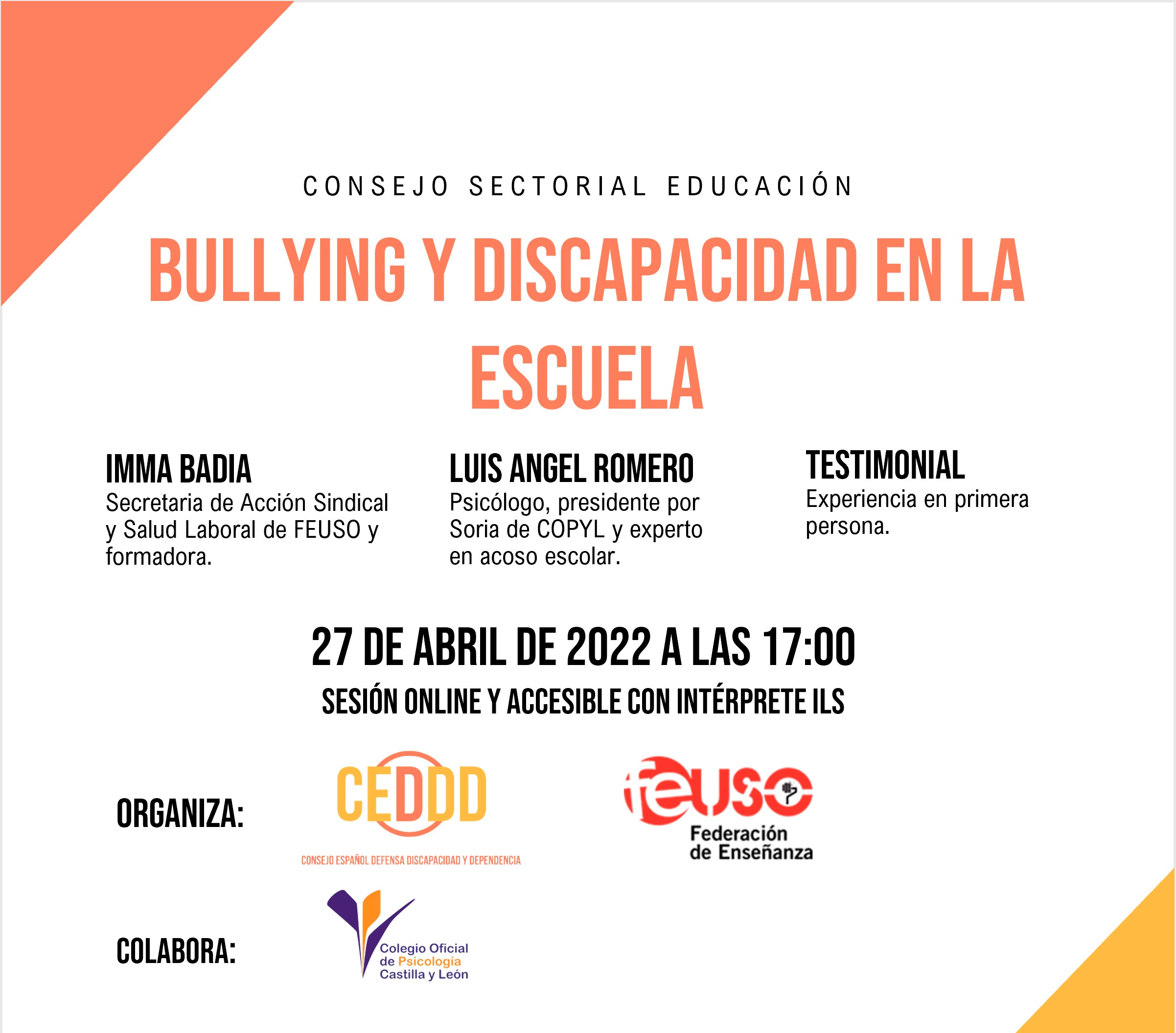 Este miércoles, 27 de abril, tendrá lugar la Jornada sobre “Bullying y Discapacidad en la Escuela”, en formato on line, organizada por el Consejo Español de Defensa Discapacidad y Dependencia – CEDDD.