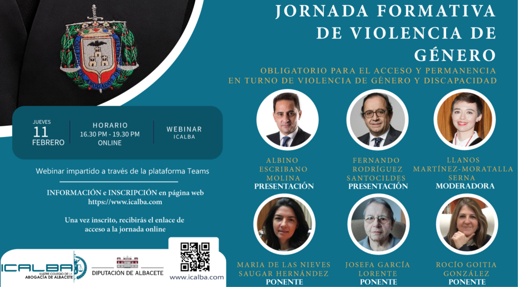 El jueves 11 de febrero se celebró una Jornada Formativa sobre Violencia de Género organizada por el  Ilustre Colegio de la Abogacía de Albacete (ICALBA) a la que el COPCLM fue invitado a participar, en este caso con la ponencia de Rocío Goitia, vocal del colegio, con el tema  “Mujeres Víctimas de Violencia Sexual y Revictimización”.