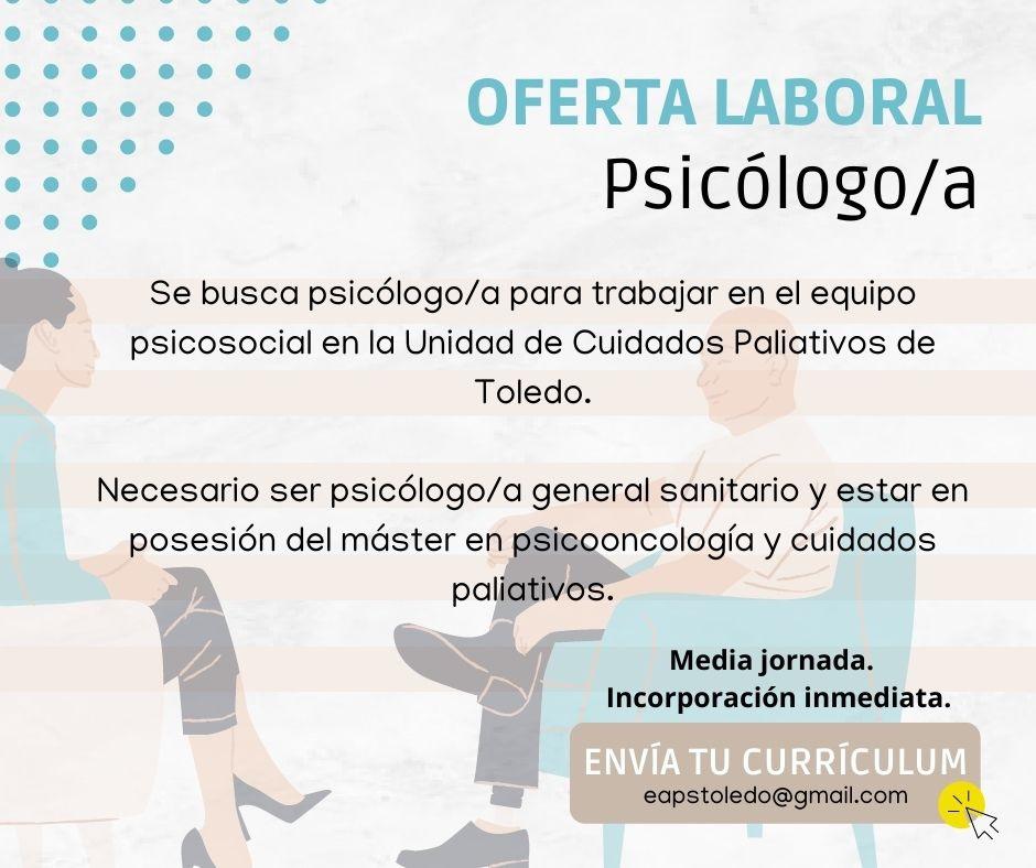 Oferta de empleo en el equipo Psicosocial en la Unidad de Cuidados Paliativos de Toledo.