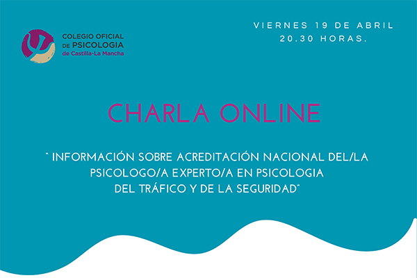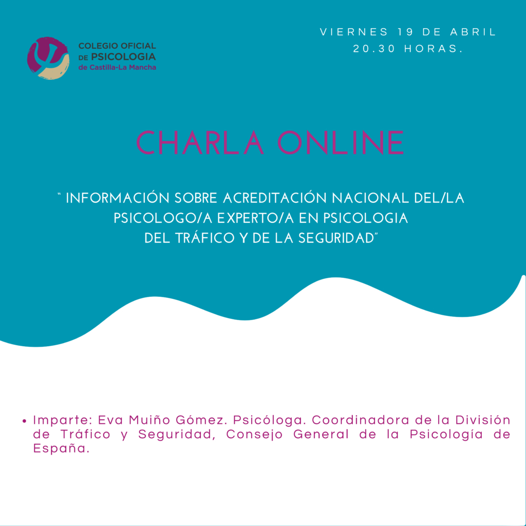 Este viernes, 19 de abril, a las 20:30 horas, tendrá lugar una charla on line en la que se ofrecerá información sobre la Acreditación Nacional del/la Psicólogo/a Experto/a en Psicología del Tráfico y de la Seguridad.