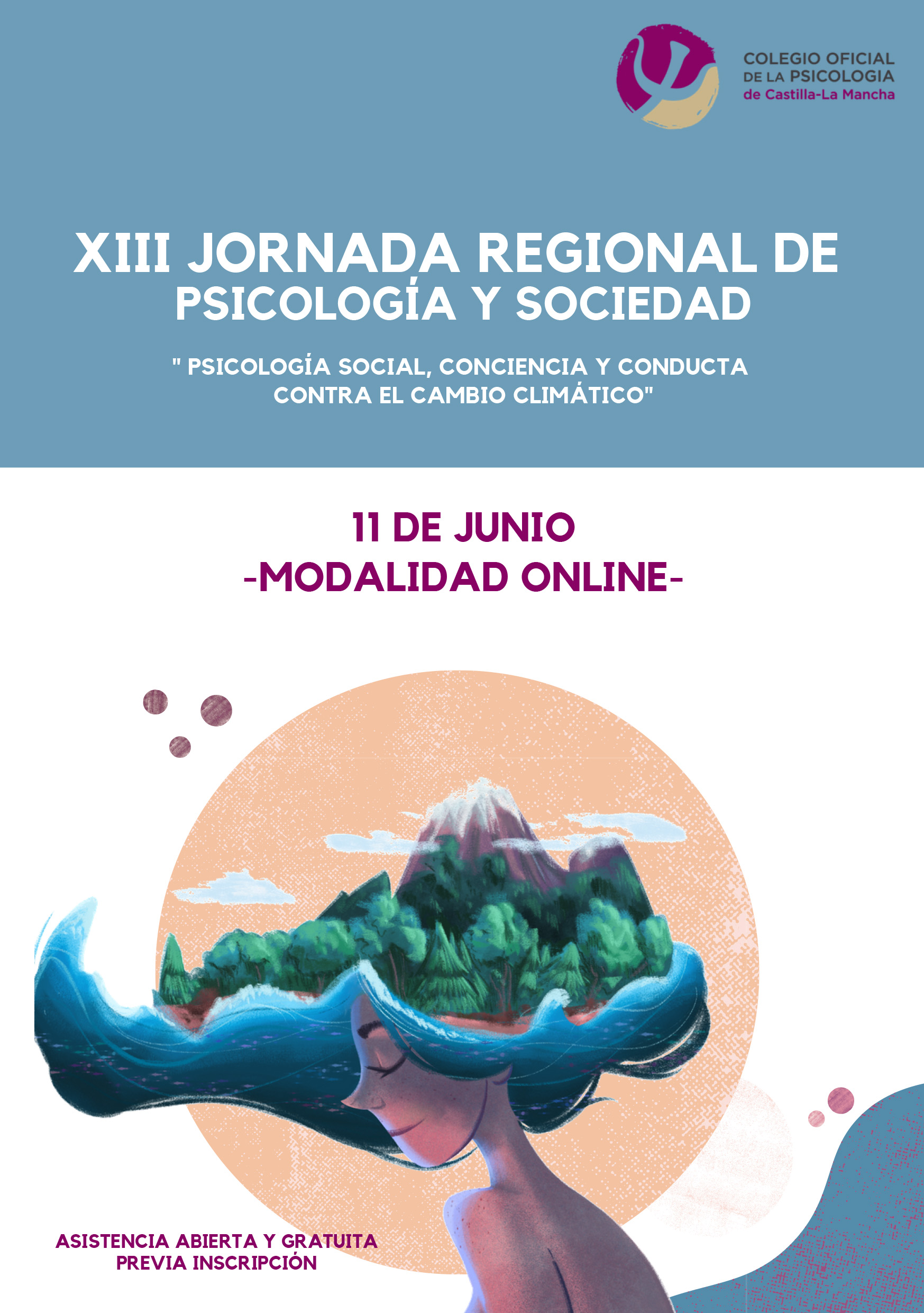 El Colegio Oficial de la Psicología de Castilla-La Mancha ya tiene elaborado el programa de la XIII Jornada de Psicología y Sociedad que, bajo el título “Psicología social, conciencia y conducta ante el cambio climático”, tendrá lugar el viernes 11 de junio, en modalidad on line.