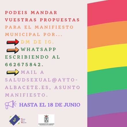 Este año, el manifiesto municipal con motivo del día internacional del orgullo lo hace la gente joven, y se gestionará a través del Servicio de Salud Sexual del Ayuntamiento de Albacete.