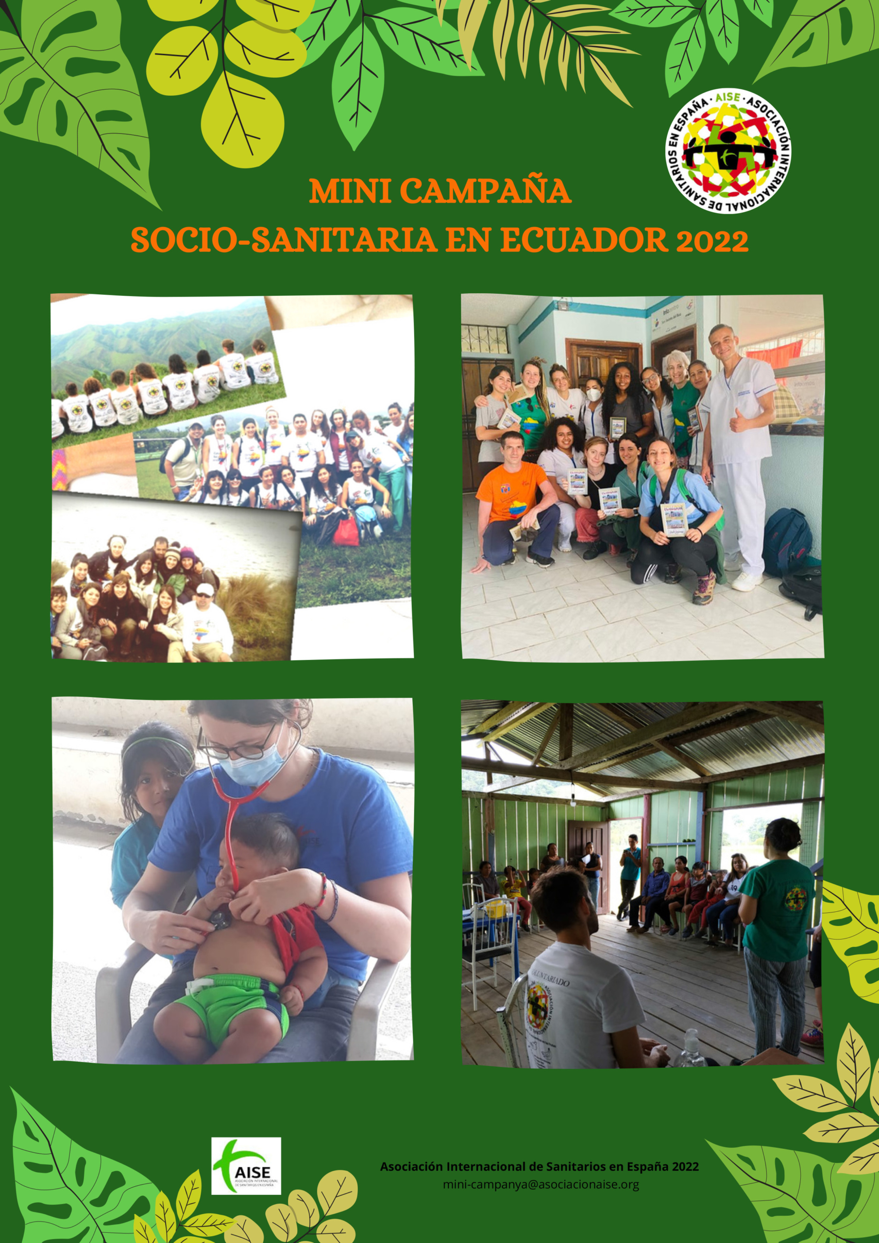 La Asociación Internacional de Sanitarios de España (AISE), entidad sin ánimo de lucro que trabaja en proyectos sociosanitarios en Ecuador y Perú, informa que está realizando una iniciativa en relación con el voluntariado sociosanitario en Ecuador.